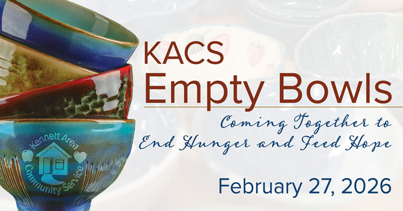 The truth is often the most bitter pill to get down. When Kennett Area Community Service (KACS) Executive Director Leah Reynolds spoke at the organization’s annual Empty Bowls fundraiser in February of 2020, she told the audience that 550 community households were using the services of the KACS Food Cupboard every month. When Reynolds speaks to the audience who attends KACS’ 12th annual Empty Bowls event on Feb. 24, she will inform them that 550 has grown to 748 and shows very little signs that it will ever decrease. Sharp against these alarming statistics and in the growing reality that reports a surge in homelessness in Chester County, the importance of the agency’s largest fundraiser is not lost on Reynolds.